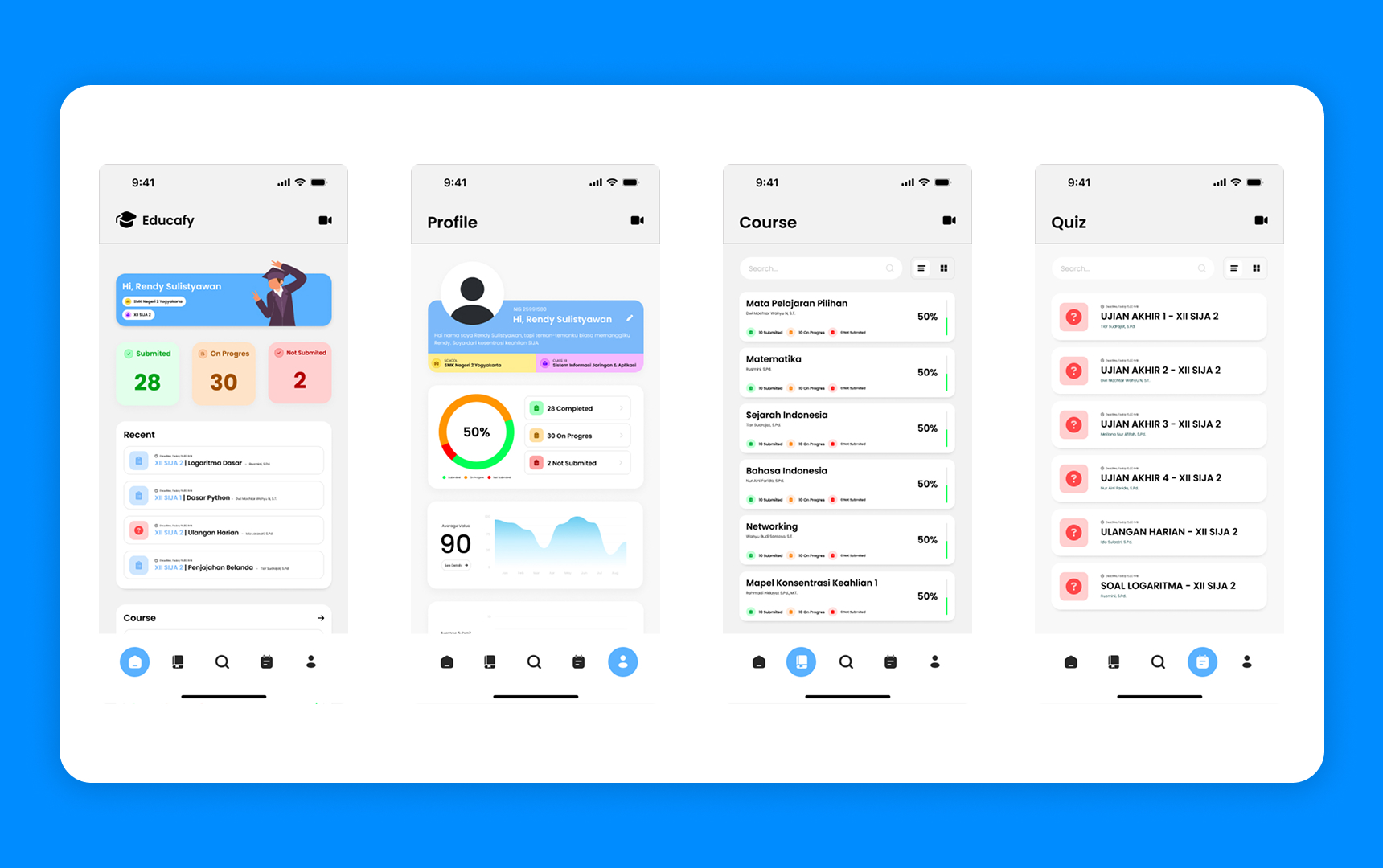 Amikom University's UI/UX competition focused on education. My team decided to create an e-learning mobile app. We completed the design in three days and won 1st place.
